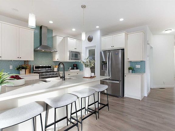 Welcome home to your 2-storey family sanctuary in the heart of highly sought-after Bayview. This spacious home, boasting 5 bedrooms and 3.5 bathrooms across an impressive 3,000 sq ft, is situated on a rare, oversized 4,525 sq ft pie-shaped lot—the ultimate blend of convenience and tranquility. From the moment you walk through the door, the home feels expansive and refined, thanks to nine-foot ceilings and a sophisticated palette across three fully finished levels. The open-concept main floor, anchored by a beautiful gas fireplace, is where life happens. Chefs will adore the gourmet kitchen, which features creamy white cabinetry, a luxurious double wall oven, a powerful gas range, and a brilliant walk-through pantry. Plus, a dedicated main-floor den with custom built-ins ensures you have the perfect quiet spot for working. Upstairs is designed entirely for rest and retreat. The spacious upper-level features new carpeting, generously sized bedrooms, with an expansive primary suite with a spa-like bath, including separate vanities and an oversized glass shower, plus a walk-in closet. 2 additional bedrooms, 4-piece main bathroom and a convenient laundry room, are all located on the 2nd floor. Additionally, the smart layout even features a large family room - ideal for kids' play or family movie nights, that can easily transform into an enormous 5th bedroom! To top it all off, the finished lower level provides the ideal setup for guests or extended family, offering an additional bedroom, an oversized recreation room, a 4-piece bathroom, ample storage spaces. With central air conditioning and a widened driveway, this home truly delivers modern luxury without compromise, but the true jewel is outside. Your massive, private yard is an entertainer's masterpiece! Picture yourself hosting effortless parties on the majestic two-tier deck, sheltered by a gazebo, and complete with a natural gas connection for the BBQ. There's a designated spot for your hot tub and a separate area for a cozy fire pit. Located in the family-friendly community of Bayview, this peaceful haven is steps from everything—parks, walking paths, canals, great schools, shopping, and easy access to Deerfoot! Seamlessly blending style, functionality, and ultimate comfort, it’s time to experience modern living at its finest, and it's completely turn-key! Don't miss this opportunity; contact us to arrange your private showing today!
