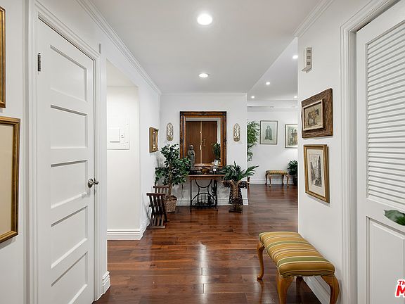 Prime BH location, north of Burton Way. 24/7 concierge/security. Only 2 units per floor feels like your own private elevator. Formal entry leads you into front facing 2 bed 2.5 bath remodeled unit. Large open floor plan includes living room, den and dining areas that open to balconies which faces tree-lined street. State of the art kitchen with newer hi end appliances, granite counters, custom shelving, cabinets for plenty of storage. Large primary bedroom with a balcony, built in dressing table and walk in custom closet and spa like bathroom with a separate tub and shower. 2nd Bedroom has a private bathroom lots of closets and a full wall library with hand crafted shelving. Washer and Dryer in the unit. Hotel like roof top pool, gazebo and dining area with professional sized BBQ's for entertaining. Common areas also include a gym, huge entertaining room with kitchen. Formal entry. Living room includes a custom bar and extensive lighting. Located near essential shopping, Cedar Sinai, Rodeo Drive, and Restaurants.