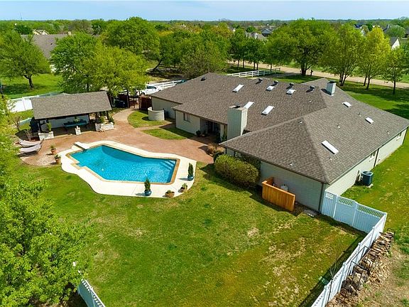 Gorgeous Custom Home in Country setting features, 3 Bed, 2.5 Bath, office that could be 4th bedroom. Attached Mother in-law suit or apt .Excellent location, min.to lake, loop 288, hwy.380. Prestigious neighborhood. Upgrades galore. Spacious floor plan that includes extensive mill work and 5 inch oak flooring. One of a kind shaker style kitchen cabinets with granite counter tops plus two pantries. Lots of light with tons of storage. Large master suite, laundry-mudroom, 2 fireplaces. 3 car garage with workbench and handcrafted cabinets. Access to well water for pool and maintaining lush landscaping, mature trees. Outdoor cabana, built-in kitchen with sparkling pool. MOTIVATED SELLER!