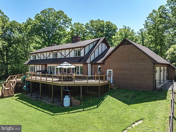 Welcome to this beautifully maintained English Tudor residence, ideally located in the heart of Madison, VA. Featuring 4 spacious bedrooms, 4.5 bathrooms, this home offers nearly 7,000 square feet of thoughtfully designed space across three finished levels. From the moment you arrive, the home’s timeless Tudor charm makes a lasting impression — steep gables, classic architectural lines, and arborvitaes lining Oneals Road, providing both screening and privacy. Large casement windows and lush landscaping enhance the curb appeal and highlight the home’s storybook elegance. Step through the front door into a welcoming foyer featuring an elegant curved staircase, setting the tone for the home’s refined character. Rich hardwood floors extend throughout much of the main level, creating a warm and sophisticated ambiance. At the heart of the home lies an expansive kitchen, anchored by a center island just shy of 11 feet with a farmhouse sink, abundant storage drawers, and seating. A walk-in pantry and cozy breakfast nook enhance both functionality and charm. Nearby, the full laundry room with custom shelving makes day-to-day living effortless, while a mudroom and half bath off the oversized three-car garage provide everyday convenience. For more formal occasions, a dedicated dining room with a decorative accent wall offers a stylish setting to host meals. At the front of the house, a spare living room provides a peaceful space for morning coffee and bird watching, or a place for guests to relax during holidays when gatherings overflow. Just off the kitchen and family room, step onto the recently renovated 65’x21’ wooden deck — a true highlight of the home. Here, you’ll enjoy spectacular sunset views over quiet farmland and the distant Blue Ridge Mountains. Whether entertaining or savoring a tranquil evening, this outdoor space offers a truly serene setting. The main level is complete with a calming primary suite, featuring a spa-inspired en-suite bath with a tiled walk-in shower, soaking tub, double vanity, and a spacious walk-in closet. A dedicated home office with custom built-ins and a wood-burning fireplace offers the perfect work-from-home setup. The upper floor features a second primary bedroom with a private bath and an impressive wall-to-wall closet with sliding glass doors. Two additional bedrooms, each with double closets, are connected by a Jack & Jill bathroom with a separate double vanity area. Ample storage throughout, including a large floored walk-in attic, supports a clutter-free lifestyle. The newly renovated lower level is exceptionally versatile. It features a full, modern kitchen, an open living area, two guest rooms (not to code), a full bathroom, and a utility room currently outfitted as a home gym. With tile flooring throughout, a private washer/dryer closet, and direct access to a brick patio exiting into a fenced-in backyard, this space is perfect as an in-law suite or income-producing rental. (An existing Airbnb listing is available to convey with the home.) This property offers farm views without the work, set just minutes from Madison’s schools, Food Lion, and Route 29. Tucked in a quiet, friendly neighborhood, the home provides both seclusion and community—a rare and coveted combination. Comcast Internet ! Back entrance/exit to Fairgrounds Rd- 3 car attached garage- 30x24 Work shop/Storage barn w/ porch and tractor door. See Virtual Tour above the picture section. Also lots of information loaded in the documents icon above the pictures.