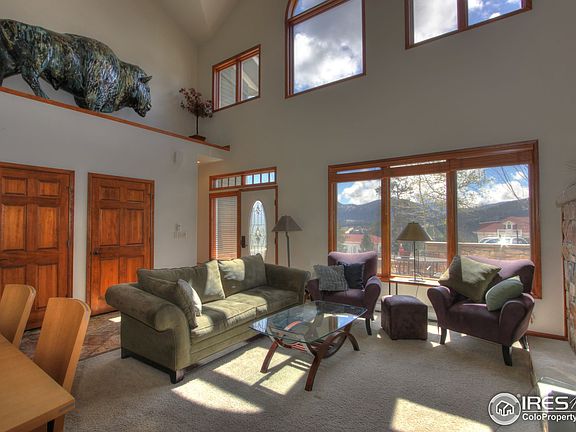 Upscale home with 2 bedroom suites. Main level living with open floor plan, stainless steel appliances, granite counters, tiled floor, fireplace, vaulted ceilings. Main level master with 2 closets, luxurious master bath. Upper loft suite with large closet, luxurious 3/4 bath. Home has many windows to captures the views, wildlife and great light. Comes fully furnished, currently used as a short term rental but could be a year around residence also. Enjoy the Stanley Hotel just steps away.