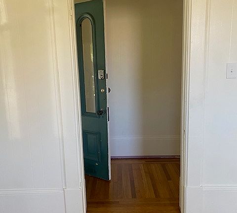 Walk to the plaza! Lovely one bedroom with a separate office, large living room, new kitchen, separate dining room and large en-suite bedroom at the end of a quiet dead end street. Kitchen has gas stove, dishwasher, new cabinetry & countertops with plenty of workspace and storage. This century-old house has been divided into two units. As you face the house, the available space is on the right side. Beautifully restored original hard wood floors, super tall windows, great neighbors, washer/dryer hookups, no fees to apply.