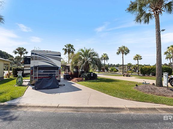 Welcome to your ideal getaway at Bella Terra RV Resort, where luxury meets comfort on this meticulously designed RV lot. The resort is centered on a 9-acre private lake, offering a serene backdrop for your stay. This exceptional property features a fully furnished, enclosed, all-season 9' x 13' gazebo equipped with air conditioning, ensuring year-round enjoyment. The gazebo sits gracefully atop a composite deck with a floating floor, offering a seamless blend of style and functionality. Gather around the fire pit on your beautiful and comfy Polywood outdoor furnishings for cozy evenings under the stars and enjoy culinary delights with the included Kamado Joe Grill and stand, perfect for grilling enthusiasts. The lot is beautifully outlined with poured edging, adding both elegance and definition, while the lush landscaping enhances its inviting ambiance. An extra-large exterior storage box provides ample space for all your essentials. This luxurious lot accommodates both Luxury Class A motor coaches, 15 years or newer and 32 feet or greater in length, and SUPER C motor coaches, 10 years or newer and 32 feet or greater in length. Resort amenities include an infinity pool, hot tub, clubhouse, business center, movie theater, fully equipped fitness center, laundry facilities, dog park, dog wash facility, and a putting green. But wait! There’s MORE! A golf cart is included with this lot to make it easy to enjoy all the resort's amenities. Bella Terra is among the top-ranked resorts in the country, perfectly situated between the Beach Expressway and Highway 59 in Foley. Just minutes away from world-class fishing and the stunning white beaches of the Gulf. This tropical retreat offers the perfect blend of relaxation and outdoor adventure. Experience the remarkable gated Bella Terra RV lot and its luxurious offerings. The Newmar Dutch Star 4354 43-foot motorcoach can be purchased separately. Buyer to verify all information during due diligence.