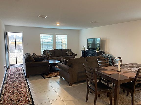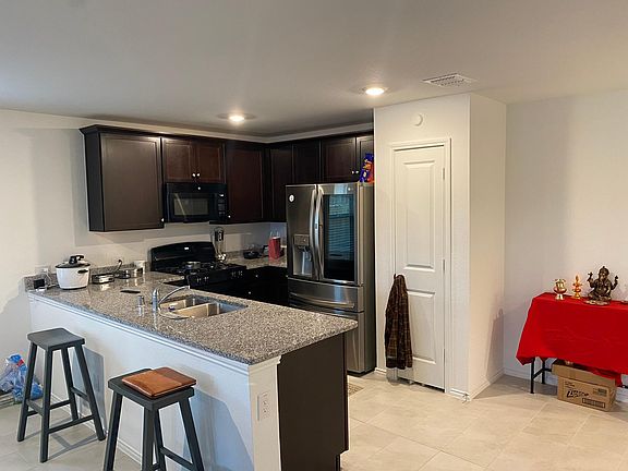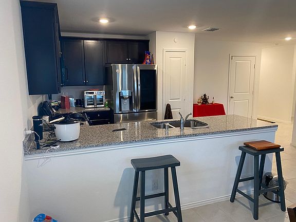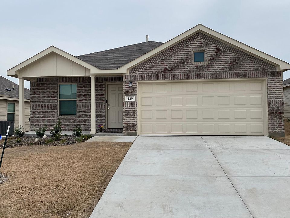Built in 2023 beautiful open concept home between the kitchen, dinning and living area with plank tile throughout the main living area. Granite countertops including the kitchen Island. Master bedroom towards the back of the house with the additional two bedrooms in front. Backyard opens up into a green belt.