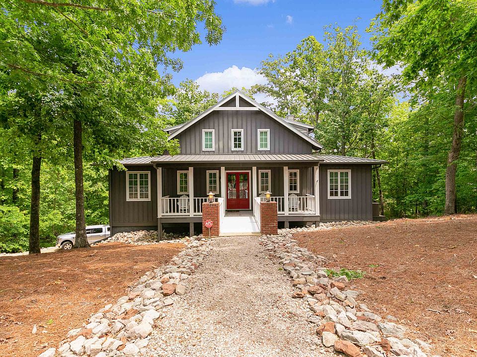 Perfect Pickwick cottage! This fantastic lake home was designed by Nashville architect Joe Bucher features open floor plan with brick and heart pine floors. Vaulted ceilings with heart pine beams and very large fan in the great room. Brick fireplace wit gas logs and gourmet kitchen with high end appliances. This home features great outside space, including screen porch, deck, huge covered patio with cooking area and firepit. Ideal for entertaining. Home includes boat slip and lift in marina.