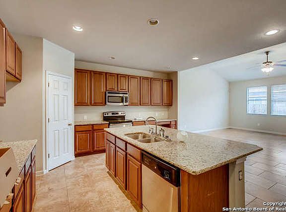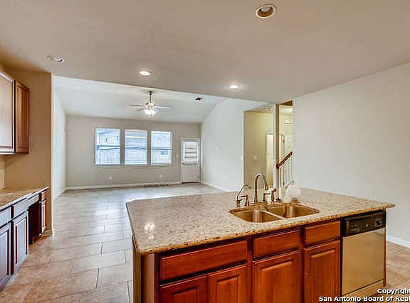 All fixed up and ready for the next buyer. Paint and carpet all redone in the last 45 days. Sprinkler system installed in 2011. TV conduits ready for install. Water heater less than 30 days old. Water softener installed 2019. Security system with sensor in LR. Granite counter tops, lots of space for this beautiful home that is in the corner of a cul-de-sac in a great location close to 1103 and IH-35 with a community pool and center that all can enjoy. The yard is a good size but not too large to maintain!!