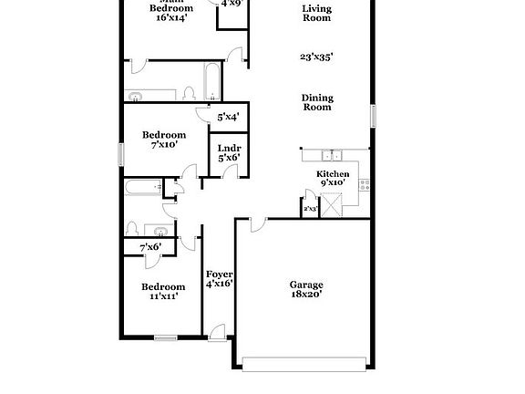 Modern appliancesAttached two-car garageAiry open floor planTile floorsThree bedroomsTwo bathroomsBeautiful quartz countertops