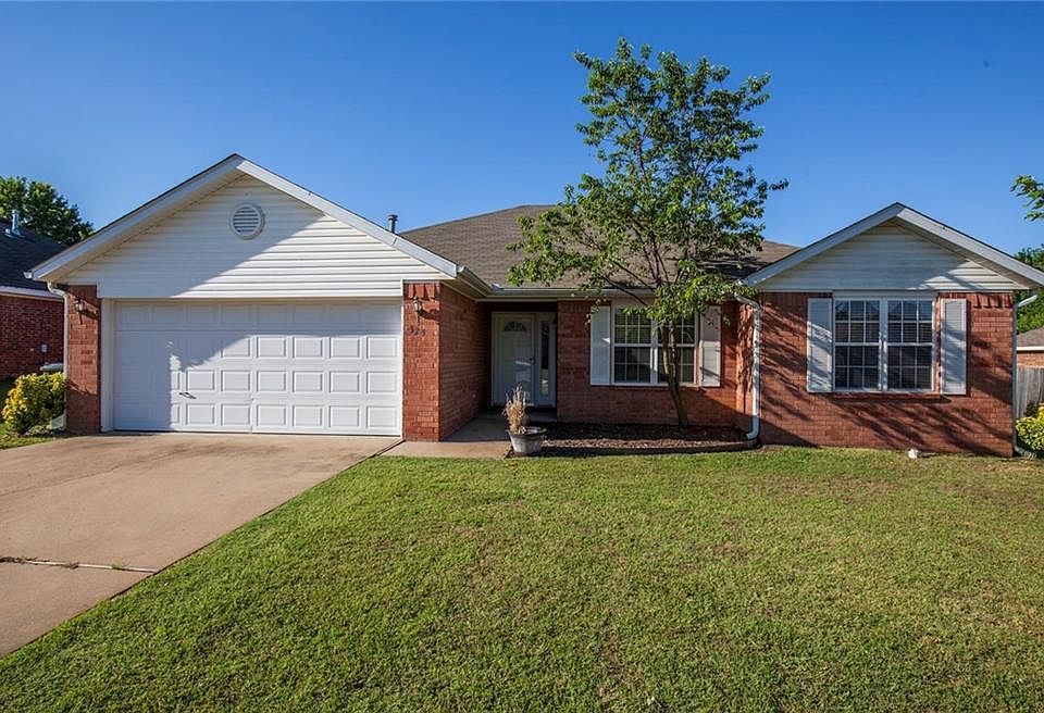 Great Location just off I-49 in Lowell. Well maintained 3 bedroom 2 bath home has laminate wood flooring thru living room and hall, carpet in bedrooms, tile in bath and kitchen. Gas log fireplace in living room. Master suite has large walk in closet and separate whirlpool tub and shower. Fenced yard