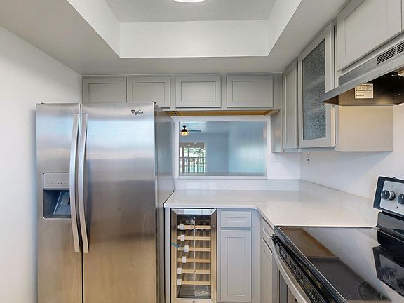 Recently remodeled kitchen w/stainless steel appliances and wine fridge. Large combined living/dining area perfect for entertaining. Expand entertainment area with sliders open to porch that run along entire length of unit. Ideal space for outside wet bar possibilities.