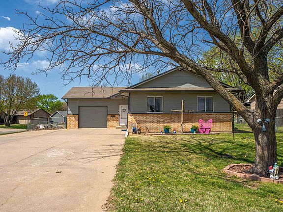 Welcome to 325 S Goddard Rd, a beautiful 3-bedroom, 3-bathroom home with over 1,800 sq ft of comfortable and cozy livable space in the highly desirable Goddard school district. Located on a sizable corner lot, this home has everything you need to create the perfect space for your family to grow. The main living space greets you as you enter the home, highlighted by LVP flooring that adds additional warmth to the space and natural lighting flooding in from the large window overlooking the backyard. The sellers are offering a $2000 credit allowance towards refreshing the paint in the living room, hallway and stairwell to their future buyers!! A fresh coat of paint will really refresh and revive this amazing space! This area will flow seamlessly into the kitchen and dining space. The kitchen is efficient with all appliances staying with the home, an island for convenience and additional space while preparing meals, and access to the backyard off the dining space. Down the hall, you will find your first full hall bathroom for guests with the added benefit of a dog sprayer, the master bedroom with a full ensuite and the second bedroom. The master suite boasts moody colored walls for some drama, a walk-in closet and its own master ensuite full bath, equipped with a stand-in shower. Traveling down to the fully finished basement, you’ll be impressed by the spacious, open living area/rec room with newer carpet throughout. A dedicated laundry room with additional shelving for convenience makes this chore a breeze! The third full bath is located in the basement hall, as well as the third full bathroom. The mechanical room will finish out this floor, further enhanced by a water softener – which is a must have in Goddard! The fully-fenced backyard of the home is a perfect place to enjoy guests and grill some steaks on the expansive, newly-painted deck with built-in pergola to provide you with all the shade you need! There is a poured concrete patio that lays beneath the deck so there is potential for the deck to be moved and enjoy two separate exterior entertainment areas! A shed adds extra storage space for all your tools, lawn mower, etc! A long-poured driveway with two access points adds more space for parking several vehicles, while the deep 1-car attached garage provides built-in cabinets and a workbench. This is an affordable, must-see home in a beautiful community located right by the schools, local park, water park, Goddard pool, baseball fields, and all of the commercial businesses just down the street off of Kellogg! You do not want to miss this!! Call for a showing today!