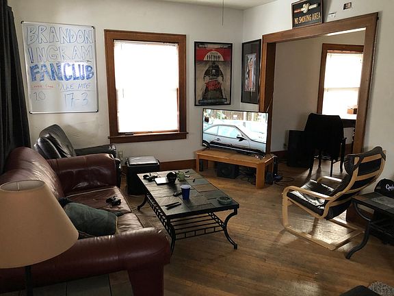 Four bedroom, two bath house, three blocks from downtown. One block from free bus service to downtown. Kitchen includes refrigerator, range, disposal and dishwasher. Free off street parking. Hardwood floors on first and second level. Clothes washer and dryer in finished basement. Central air conditioning and front porch. 360 day lease.