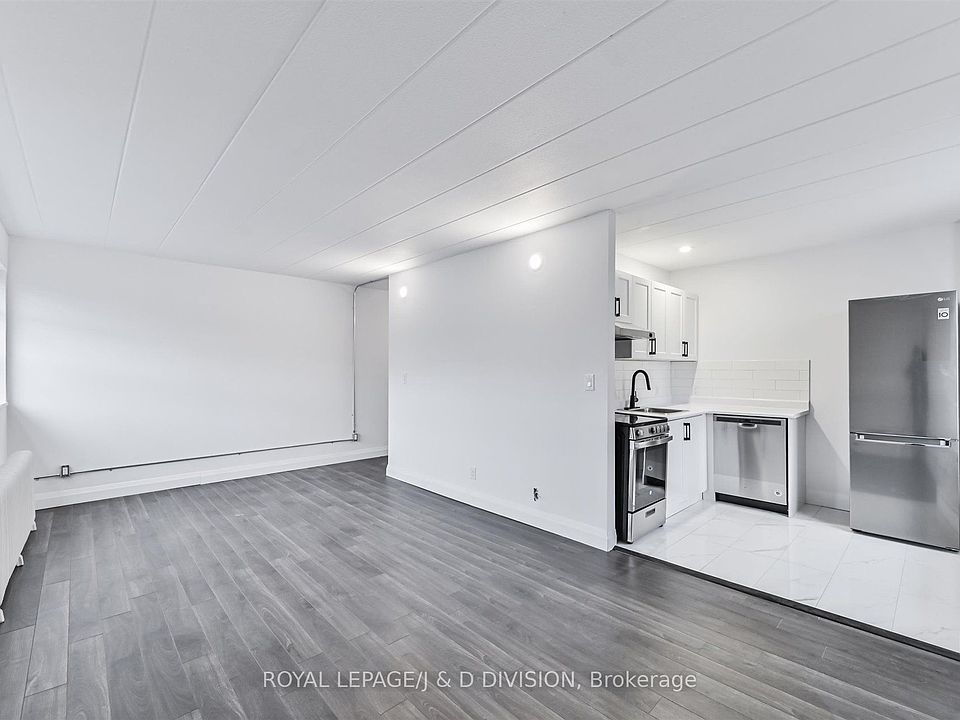 This fully renovated One-Bedroom unit is situated in an impeccably maintained building just steps from The Danforth! The front hallway and entrance feature a large double-mirrored closet for clothing storage. The spacious living area offers ample room for both relaxation and work-from-home needs, and is flooded with natural light thanks to a large window spanning the length of the room. The modern kitchen boasts stainless steel appliances (including a dishwasher, stove with vent, and LG fridge), ample cabinet storage, and is complemented by an elongated white subway tile backsplash, sleek black fixtures, and marble floor tiles. An in-unit air conditioner is also included. The bedroom offers a mirrored double closet and large window for extra light. The stylish bathroom features a walk-in shower with marble hex tile and sleek black fixtures. Conveniently located close to TTC, parks, restaurants, and amenities such as the popular Left Field Brewery and the Danforth Music Hall, this unit is the perfect home for a young professional or couple saving to buy their first home! **EXTRAS** Unit includes Dishwasher & A/C