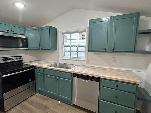 MOVE-IN READY REHABBED STARTER HOME. This darling home was just renovated with many new features. New HVAC, electric, plumbing, insulation, sheet rock, vinyl siding, roof, windows, floors, cabinets, and concrete driveway. Covered porch and utility room. Walk in to the spacious living area with recessed lighting, vaulted/smooth ceiling, fresh paint and durable LVP flooring. The kitchen has butcher block counters, all new stainless steel appliances, including microwave, painted cabinets and new hardware. All bedrooms have new carpet - tiled shower in the master bedroom bath and in shower.