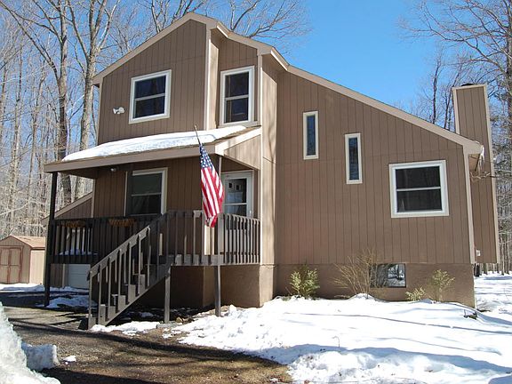 WOW! This 3 bedroom 2 bathroom Contemporary home has so much to offer! Beautiful open floor plan on the first floor with vaulted ceilings in both the living room and formal dining room with skylights letting in an abundance of natural light. Other features of this home include a stone fireplace, a partially finished basement, plenty of storage space, and oversized back deck, a 1 acre flat lot with a large back yard and fenced in garden area, and a garage with a built in room once used as a studio area! New, 20 year warrantied Pella 350 windows. Super great price with low taxes!
