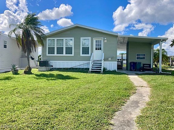 2 bed/2 bath home is move-in-ready and comes fully furnished. Home is located in a 55+ waterfront community situated on the Orange and Caloosahatchee's Rivers. It will make a beautiful permanent residence or seasonal getaway. Price includes share for lot and ownership in the co-op. Low monthly fee of $407 includes private streets, professional management, water, sewer, trash pickup, lawn mowing, fiber optic internet, and all amenities including heated pool, bocce ball, pickle ball, shuffleboard, and many clubs and activities. and clubhouse and two boat ramps. Two pets per household are welcome. Some dog breeds are prohibited, so be sure to review the community rules. ESA or service animals are allowed. All buyer must be approved by management.
