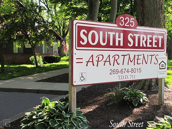 South Street Apartments is located in The Village of Lawrence, Michigan. A small, hometown community nestled at the center of Van Buren County. Lawrence is evenly distanced (2.5 hours) between Detroit and Chicago and boasts a variety of scenic agricultural farms and picturesque lakes, all within a few miles of the Village. With direct access to I-94, it s just a short drive east to Kalamazoo or west to Lake Michigan beaches. South Street Apartments feature spacious floor plans with air conditioning wall units, private balconies and lots of closet space. At South Street we pay for the heat, water/sewer, trash removal, snow plowing and landscaping. Explore South Street Apartments today! Barrier Free Apartments on-site.