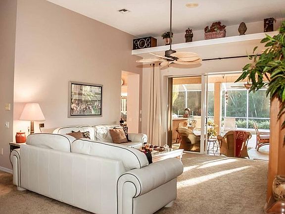 Well-maintained home on deep water canal 5 minutes & no bridges to ICW. Home features oversized rooms and volume ceilings (10-12) Oversized lanai and outdoor kitchen with built-in propane grill and fridge. Lush plantings and island in canal create privacy on this half-acre lot.