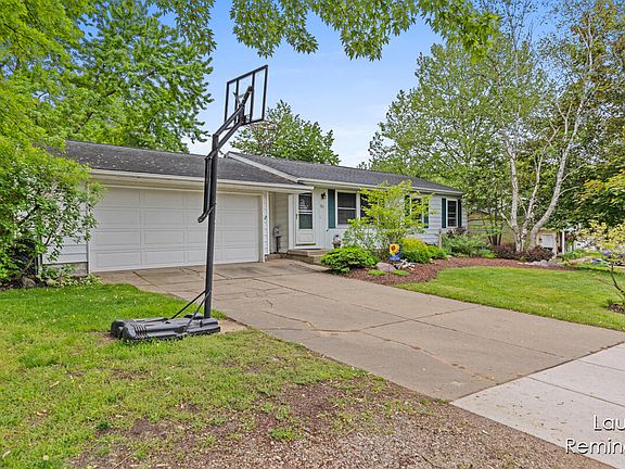 This charming ranch home offers the opportunity of rare affordability in the Forest Hills school district! Just minutes from the revitalized & growing town of Ada, this perfect home on a quiet street won't last long! Beautiful landscaping greets you out front. Enjoy the scene from the living room picture window. The kitchen hosts an eating area with views of the serene & expansive backyard. You'll want to spend all of your outdoor time in this large, lush, gorgeous space. Fenced in & plenty of room to garden. Three bedrooms & a beautifully remodeled full bathroom complete the main level. The finished basement is perfect for recreation, play, exercise & office area. Cozy up in front of the gas fireplace for TV & games. Already plumbed for a 2nd full bathroom makes it easy to upgrade to a two-bathroom home! The workout area is spacious & could be converted to a bedroom by adding an egress window. Seller directs showings begin at 10am on 5/17/24. Seller directs offers due by 3pm on 5/21/24.