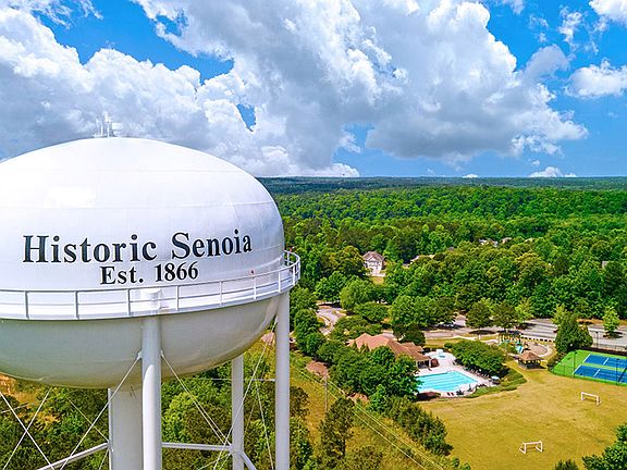 GOLF CART PATH TO HISTORIC DOWNTOWN SENOIA | MINUTES TO PEACHTREE CITY WITHOUT THE PRICE TAG | OVERSIZED LOTS WITH TREE LINED BACKYARD PRIVACY. The Savannah floorplan at Heritage Pointe is a 5 bedroom, 4 bathroom two-story home. The 2-car garage ensures plenty of room for vehicles and storage. Classic and timeless, this incredible design offers a formal dining room and formal living space upon entry. Create a separate living area or a dedicated home office depending on your lifestyle. Beyond the foyer you're greeted by a spacious family room with a dramatic wall of bowed windows. The family room flows effortlessly into a casual breakfast area and a well-appointed kitchen featuring an island with bar stool seating, contemporary cabinetry, stainless steel appliances and beautiful quartz countertops. A guest bedroom and full bath complete the main level. Upstairs offers a private bedroom suite that is truly like no other. From the spacious sleeping quarters to the separate sitting room featuring the same dramatic bowed windows downstairs, you will be surrounded in luxury. Adjoining is a spa-like bath with dual vanities, separate shower, garden tub and extra closet space. There are three secondary bedrooms, two that share a split bath for the ultimate in convenience. Our homes are not only well designed, they're also smart, as each comes standard with our industry-leading suite of smart home technology that allows you to monitor your home. Photos used for illustrative purposes and may not depict actual home.