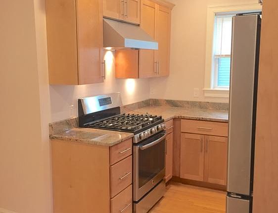 September 1 ST Clean and updated 2 bed 2 bath apartment on the 1st floor or 2 family home. Very nice granite kitchen with SS appliances, oak cabinets and granite counters. In unit washer and dryer right off the kitchen. Large LR with decorative fireplace & hardwood floors throughout. One good sized bedroom with ensuite bathroom. Smaller 2nd BR makes a good guest room, office or bonus room. Private patio for hanging out with friends. Parking for 2 cars in the driveway. 57 & 501 bus stops right at your door step. Very convenient into Boston. No smokers or dogs considered. Excellent credit and references required. No smokers or dogs considered. Please call AMY Property ID 25172
