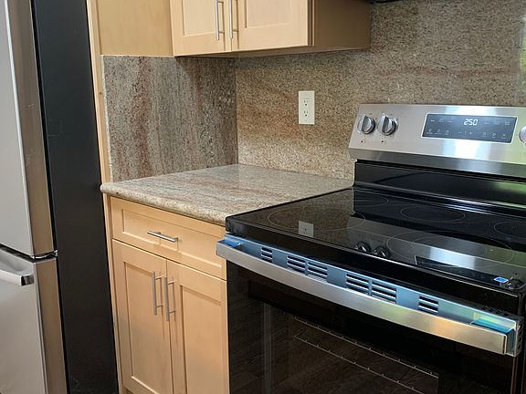 Modern updatesNew shaker style cabinetryFully remodeled kitchenCountertop bar seatingStone countertops