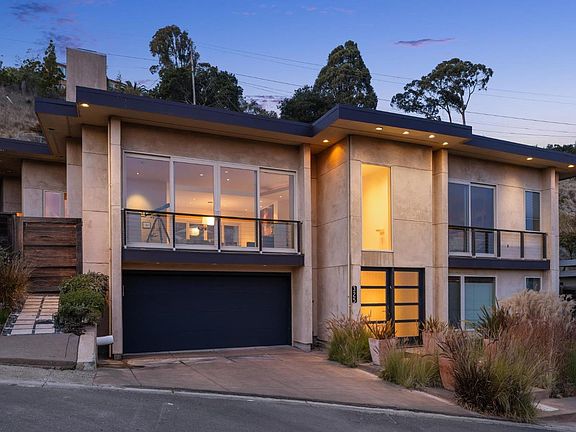 Experience elevated living in this architectural masterpiece, designed in collaboration with renowned San Francisco architect Cass Calder Smith. Thoughtfully positioned to maximize stunning views of the bay, the Ferry Building, and Bay Bridge, this residence blends contemporary elegance with timeless design. This home features a chef's kitchen with Sub-Zero appliances, Wolf range with grill, granite countertops, and custom pearwood cabinetry. Expansive skylights and high ceilings fill the space with natural light, while Pella sliding doors seamlessly connect to the stunning outdoor areas. The backyard showcases thoughtful design, with a built-in fireplace, pizza oven, water feature, custom stonework, and expansive seating areas. The luxurious primary suite boasts panoramic views, a spa-inspired bath with a freestanding soaking tub, dual vanities, and a MrSteam shower for ultimate relaxation. Additional highlights include new carpet and interior paint, spacious guest accommodations, Hansgrohe fixtures, custom closets, and a versatile family/media room. Every detail has been considered, from hardwood floors and custom lighting to the outdoor dining terrace and observatory deck, plus a backyard with space for a jacuzzi. With world-class views, it's truly exceptional!