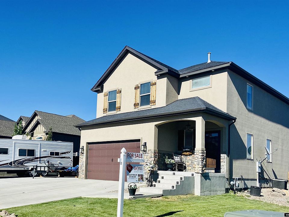 Beautiful move-in ready home! This home offers 3 bedrooms and 2.5 bathrooms with a charming front porch and tons of RV parking. Adorable Jack and Jill bathroom, and newer carpet/flooring throughout. Basement is unfinished which allows you to complete and design exactly how you want. Located on a darling street and close to elementary schools and the new remote High School. Amazing backyard space perfect for entertaining, complete with covered patio and large side yard.