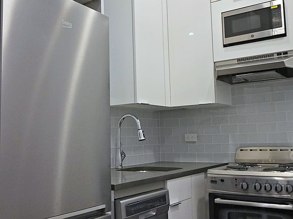 Renovated SECOND FLOOR apartment with condo quality finishes. No detail has been overlooked and every surface of the apartment has been finished with brand new designer materials including oak hardwood flooring, new double pane windows, custom moldings and baseboards. The separate windowed kitchen features custom cabinetry and backsplash, and is equipped with top of the line stainless steel appliances including a dishwasher. The bathroom features custom tiling, a vanity, and shower stall.