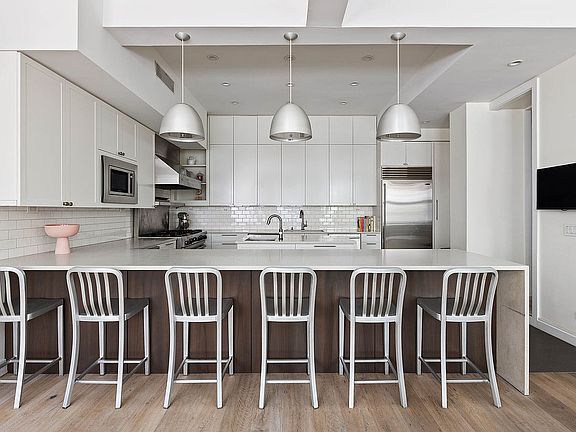 Complemented by Runtal radiators and a four-zone central air system with a backup heat pump for complete year-round comfort, the residence also features high ceilings, abundant storage, an LG commercial-grade washer and dryer vented to the outside, and City-proof windows throughout for added tranquility and energy efficiency.