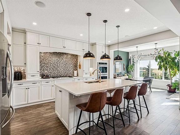 Step into this beautifully designed home through a bright and inviting foyer, featuring modern light fixtures and ample closet space—setting the stage for the sophistication found throughout this SOLAR POWERED home. Just off the main entry, you'll find a well-appointed half bath and a versatile flex room—ideal as a home office, playroom, or guest suite. The open-concept main living area is designed for both entertaining and everyday comfort. The spacious family room flows seamlessly into the dining area and showstopping kitchen, all framed by large windows that capture stunning prairie views. The gourmet kitchen features dual ovens, a 5-burner gas cooktop, sleek countertops, elegant backsplash, and ample prep and storage space. A dedicated nook offers the perfect setup for a coffee bar or extra appliances. A gas line is ready for outdoor grilling on the upper deck, which includes a retractable awning for shade and comfort. Off the kitchen, a large mudroom with custom built-ins leads to a generous 3-car garage—keeping life organized and efficient. Upstairs, you’ll find four bright and spacious bedrooms. One includes a built-in Murphy bed for added flexibility. A vaulted-ceiling bonus room provides the perfect space for movie nights, gaming, or a quiet retreat. The luxurious primary suite overlooks uninterrupted prairie views with no rear neighbors. The spa-inspired ensuite features a soaking tub, dual vanities, a large glass shower, and tile finishes. A massive walk-through closet connects directly to the upstairs laundry room for maximum convenience. The finished lower level has been extensively renovated to add a fully legalized in-law suite that expands your living space with a cozy sitting area and fireplace, a second kitchen—ideal for multi-generational living or guests—a large bedroom, and a full bathroom with custom walk-in closet. A second laundry area with stacked washer and dryer adds extra practicality. In-ceiling speakers throughout the home and outdoor areas create the perfect ambiance for entertaining. Step out onto the beautifully landscaped yard, complete with irrigation system and four raised garden beds. Five unique outdoor seating areas, including a fire pit space, make this backyard ideal for gatherings, relaxing, or play. A charming playhouse and hot tub (both negotiable) offer even more ways to enjoy this incredible outdoor retreat. This exceptional home combines thoughtful design, high-end finishes, and unmatched comfort—inside and out. Come experience the perfect blend of elegance, space, and functionality.