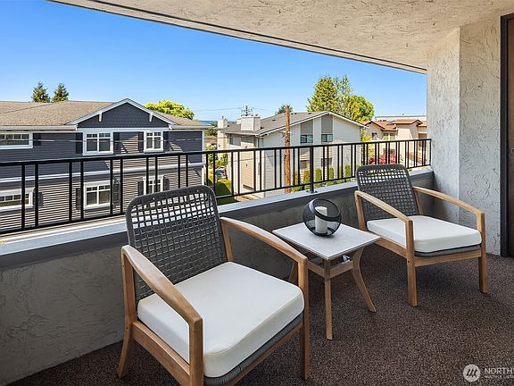 Prime Edmonds Bowl location right in the heart of downtown on beloved Walnut St! This spacious 2-bed 2nd-floor condo in the West Wind Complex lives like a house, complete w/ elevator & its own private 1-car garage. Step inside to soaring cathedral ceilings in the living rm, skylight that fills the space w/ natural light & covered deck offering peekaboo Sound views. Oversized kitchen w/ stainless-steel appl, quartz countertops, & formal & informal dining spaces. Bright & airy throughout. Primary Suite has lit built-in closet system & ¾ en suite bath w/ curbless walk-in shower & dual sinks. Steps from Walnut St Coffee & all the restaurants, shops, markets & festivals that make Edmonds so iconic. A rare in-town find!