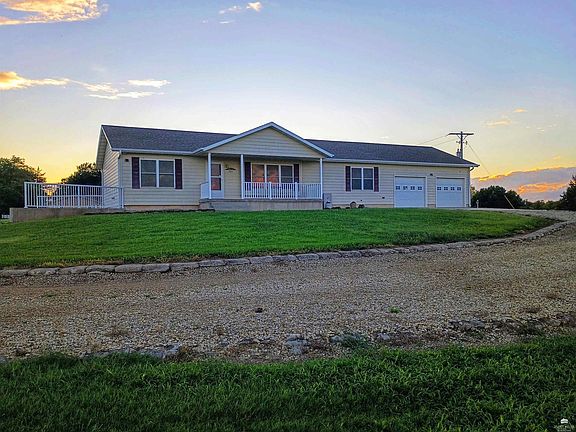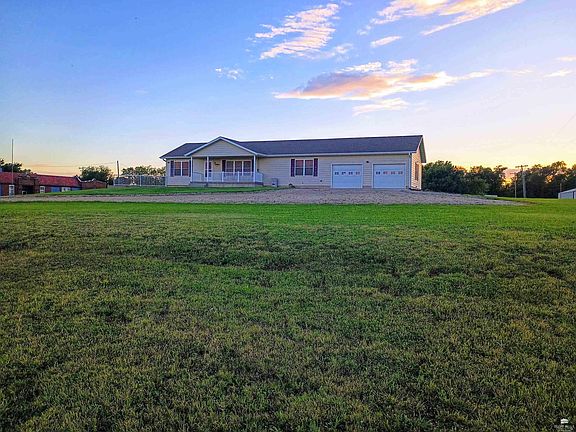 Sitting on 2.57 acres m/l at the edge of Longford, this meticulously maintained Wardcraft 3-bedroom, 2.5-bath ranch home offers city utilities with country tranquility. Enjoy a bright, open-concept layout. The main includes a primary suite with a generous walk-in closet and ensuite bath with a walk-in shower. Two additional bedrooms are located on the opposite side of the home, separated by a full bath. The fully finished walk-out basement offers additional living space with 2 conforming bedrooms, a full kitchen, a large living area, a half bath, and an additional room ideal for an office or hobby space. This home is in excellent condition with detailed maintenance records and receipts for all work done. It also features an internal water pressure pump to ensure consistent water pressure throughout the home. In addition to the oversized attached 2-car garage, there is a 40' x 48' insulated metal building, with electricity, a natural gas heater, and 3 doors.