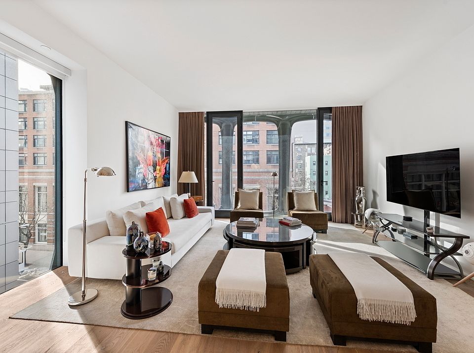 Residence 4B at the iconic Soho XOCO 325 is a 2-bedroom, 2.5-bathroom apartment with high ceilings and windows, Austrian white oak floors, and views over SOHO's West Broadway from every room.