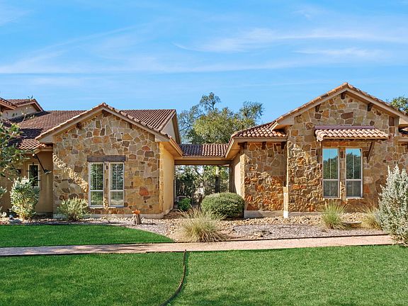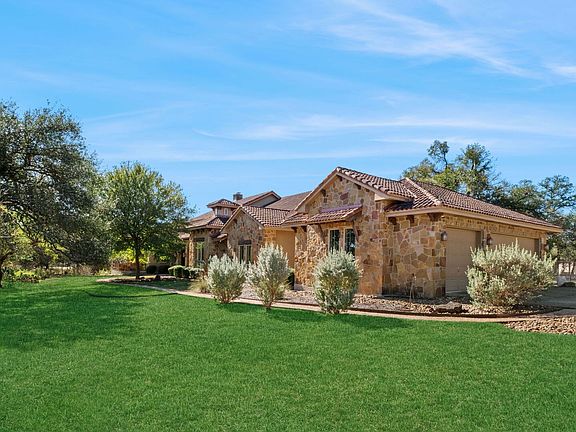 Welcome to Your Texas Tuscan Dream Home! Where timeless elegance meets modern comfort, this exceptional residence is the one you've been searching for. Nestled on a private 1.19-acre estate, this custom-crafted retreat blends Tuscan charm with Texas craftsmanship. From the moment you arrive, the home captivates with its warm and inviting exterior - a harmonious blend of Lampasas sandstone, textured stucco, clay tile roofing, and handcrafted wrought iron details that set the tone for what lies within. Step inside to discover architectural artistry at every turn. The expansive great room impresses with soaring wood-beamed ceilings, a dramatic stone fireplace, and built-in sound system - perfect for everyday living and effortless entertaining. With three spacious bedrooms, including a serene master suite, plus a versatile library/office with floor-to-ceiling bookshelves, there's space for both productivity and retreat. Movie nights come alive in your dedicated theater room, while the formal dining room, crowned by an awe-inspiring cupola and flanked by a 900-bottle wine cellar - is tailor-made for unforgettable dinner parties. The gourmet kitchen is a chef's dream, featuring premium appliances, granite countertops, farmhouse sink, oversized island with wine cooler, and thoughtful touches throughout. Whether you're preparing an intimate meal or hosting a celebration, this kitchen delivers. Outdoors, enjoy the peace and privacy of mature live oaks, cedar elms, and ash juniper. The expansive covered patio is an entertainer's paradise, complete with an outdoor kitchen, stone fireplace, and dining area perfect for alfresco evenings under the stars. Every detail in this home speaks to quality and intention - from hammered copper sinks and artisanal textures to the seamless indoor-outdoor flow. This is more than just a home - it's a lifestyle. A sanctuary inspired by Tuscan villas, built with the heart of Texas craftsmanship. Schedule your private showing today and experience the elegance for yourself.