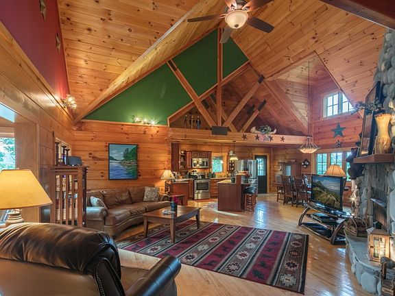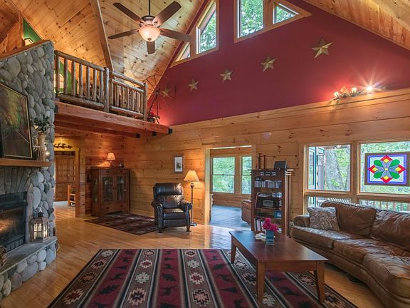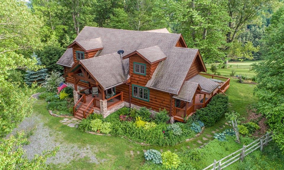 NATURALLY INVITING - You'll love this beautiful, custom log cabin with gorgeous Blue Ridge mountain & pastoral views! This 3 bedroom, 3.5 bath home w/detached 2+ car garage & workshop will give you 2400+ sq ft of generous, well laid out space(to include a spacious sun room, loft area & finished basement w/ office space, a sleeping / den area, full bath & kitchenette). The open floor plan on the main level is excellent for both entertaining & everyday living. The combination of granite, stone, slate & wood throughout the cabin adds warmth & style. Outside you'll enjoy rocking on the front porch, dining al fresco on the rear deck, gardening or just taking time to relax & enjoy all of the natural beauty that surrounds this private & very special property. This is mountain living at its finest and less than 4 miles to downtown Boone!