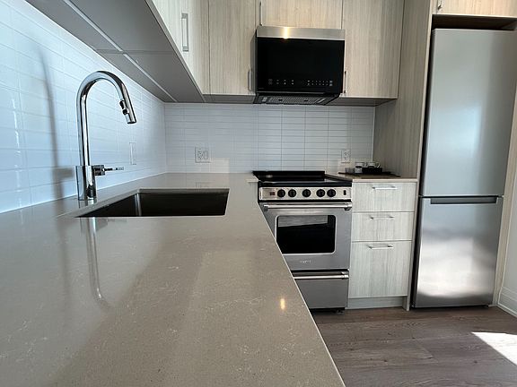 Modern 1-Bedroom + Den Condo for Lease - Bright, Stylish & Convenient! Discover the perfect blend of comfort and convenience in this brand new 567 sq ft condo, available for lease. With a spacious 1-bedroom layout, a flexible den ideal for remote work or extra storage, and a sleek 3-piece bathroom, this unit is designed for modern living. This unit offers a bright, open-concept design with large windows and natural light throughout. Beautiful contemporary finishes and a clean modern aesthetic look and feel. Don't forget the convenience of in-suite laundry for added ease along with a den space perfect for a home office for those working remotely. This condo is just minutes from schools, parks, and shopping centers as well as quick access to major highways for easy commuting (Some rooms were virtually staged to show how you can furnish this condo). The building also features a gym/yoga studio (available to tenants at no charge) and party room that can be rented for parties or entertaining.