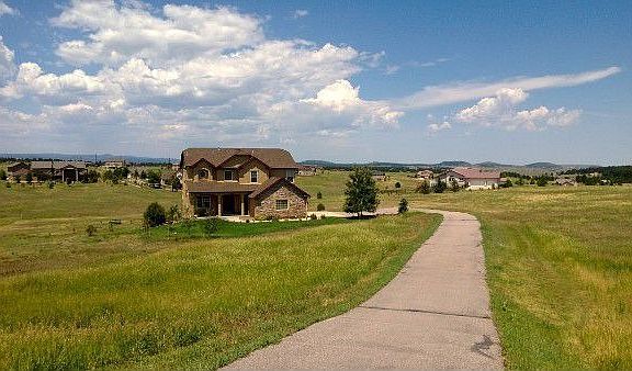 Wide open spaces greet you as you walk up to this 2-story home sitting on two and half acres with stunning views of the Front Range. Inside you will find a large front entry with hardwood floors that continue throughout the main floor and a sweeping staircase that opens to the second story. The main level is bright and open with tall 9 foot ceilings. To the left is the formal dining room. To the back of the home is large great room. The living room has a fireplace as well as built in shelves and opens to the second floor with tall ceilings and walks out to the back deck. The kitchen has a large center island with a breakfast bar, a spacious pantry, and gorgeous tiled counters. The eat-in kitchen has a breakfast nook with a bay window that showcases Colorados beautiful mountains. Upstairs the master retreat has its own side of the house for privacy as well as tall vaulted ceilings and a walk-in closet with a window and tons of storage space. French doors lead into the 5-piece master spa with duel sinks, soaking tub, and separate shower. Two additional bedrooms, and the laundry room a full bath with duel sinks complete the second floor. Downstairs the family room has more built-in shelving and walks out to the backyard. There are two additional bedrooms downstairs one with a walk-in closet as well as a full bathroom.