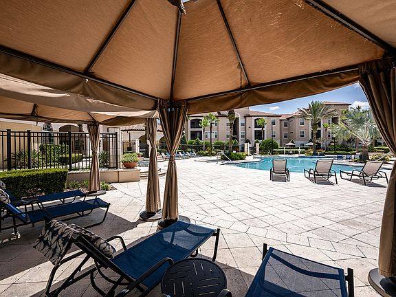- Exterior features: 1/1st Floor, Business Conference Center, Fire Pit with Seating, Flooring Throughout, Outdoor Pavillion with Bar, Pet Oasis, Putting green, Resort Style Cabana Seating, TV Lounge, Top Floor, View Type: Pond View, View Type: Wooded View