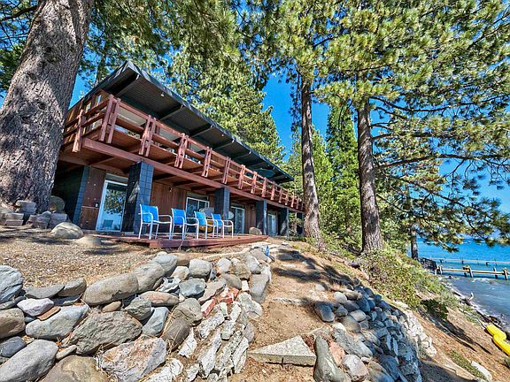 Nestled along the serene shores of Lake Tahoe, 3250 Edgewater Drive, also known as a sanctuary of peace and quiet, presents a rare opportunity to own a legacy property in the coveted Dollar Point neighborhood of Tahoe City. On the market for the first time in 59 years, this extraordinary lakeside retreat offers nearly 100 feet of private shoreline and unobstructed views of Tahoe’s iconic crystal-clear waters. This home has been held in one-family, multigenerational ownership since it was built and has never been listed on VRBO or Airbnb nor used as a vacation rental. Offering an unparalleled sense of privacy, care, and authenticity that’s increasingly rare in today’s market. The timeless 5-bedroom, 4.5-bathroom residence spans 2,736 square feet across multiple levels, blending classic mountain architecture with breathtaking lake and mountain vistas from nearly every room. The bright and open main living area features expansive windows and a cozy fireplace—perfect for gathering with loved ones or simply relaxing and taking in the views. Upstairs, a private guest suite with en-suite bath and a convenient half bath for visitors provide comfort and privacy. The lower level offers four additional bedrooms and three bathrooms, including a spacious primary suite with its own fireplace, walk-in closet, and en-suite bath—an ideal place to unwind while watching the snow fall over the lake. Step outside to a generous lakeside deck designed for entertaining or enjoying the soothing sounds of the waves. This home includes two deeded buoys and ownership of a shared multi-use pier which will be built on the existing platform next to the property line but not obstructing the 100 feet of shoreline. In addition, the new owner is able to add a boat lift for their own personal use. (Currently under construction, with completion expected Fall 2025). Other notable features include a large parking pad that accommodates up to five vehicles and membership in the exclusive Dollar Point Association. This includes a swimming pool, kids play structures, tennis and pickleball courts, bocce ball, yoga classes, picnic areas and access to a private beach with fishing dock, beach volleyball court, restrooms, roped off swimming area, lounge chairs, and a seasonal shuttle service from the pier to moorings. Whether you're enjoying powder-filled winters or sun-soaked summer days, 3250 Edgewater Drive delivers the ultimate Tahoe experience—just minutes from world-class ski resorts, hiking, biking, and the vibrant amenities of Tahoe City.