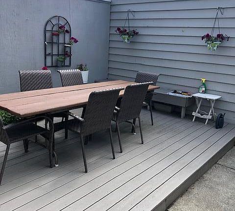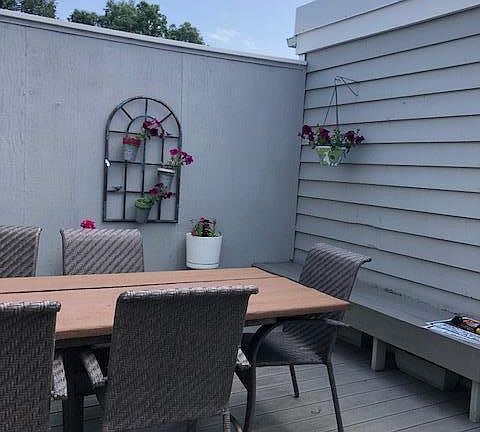 Beautifully remodeled one owner home ready for it's new owners. Sought after Mount Vernon Commons Community sits on 15 acres of fenced land with lush grounds and mature trees.Euro blue lacquer cabinets with red tile backsplash and red countertops. Granite wall around the fireplace gives it depth. New half bath with same cabinets as kitchen. Wood flooring on main level and new carpet/pad for upperlevel. Large walk in shower with new luxury plank laminate floors, sink and more. Deck has been enclosed to create a yoga room for your enjoyment. All new windows, closet doors, paint, french entry door, too much to mention. Dues are high due to walk ways being maintained year round, cable is included and beautiful land maintenance.