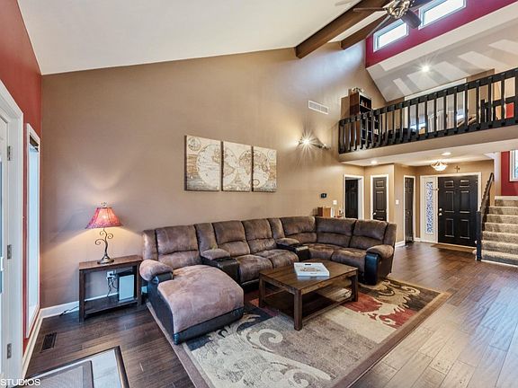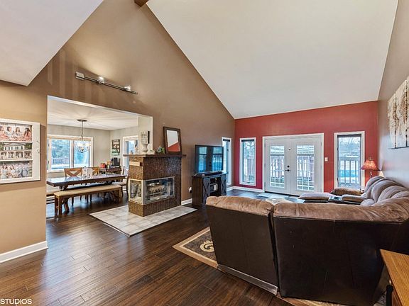 This ONE OF A KIND Lakes of the Four Seasons home will WOW you! OPEN CONCEPT layout with VAULTED CEILINGS, FIREPLACE and newer BAMBOO FLOORING throughout. MODERN KITCHEN has butcher-block ISLAND, STAINLESS appliances, DINING AREA with LARGE WINDOWS. LUXURY MASTER SUITE has VAULTED CEILINGS, CORNER FIREPLACE, PRIVATE BALCONY, HUGE SOAKER TUB, tiled shower, wainscoting, DOUBLE BOWL VANITY, BIG WALK-IN CLOSET, and BONUS LOFT! Main floor contains 2 BIG BEDROOMS, full bath and LAUNDRY ROOM with window. NICELY FINISHED BASEMENT offers SPACIOUS REC ROOM with built-in WET BAR, 4th bedroom'', and more storage space. FULLY FENCED YARD features POOL with MULTI-LEVEL DECK, nicely landscaped PATIO, and backs up to open GREEN SPACE ideal for SLEDDING this time of year! NEW ROOF 2019, NEW FURNACE/AC/WATER HEATER 2020. All this PLUS everything LOFS: security, golf, clubhouse, boating, parks, beaches, sports fields, community events, concerts, restaurant and MORE! DON'T MISS THIS ONE!