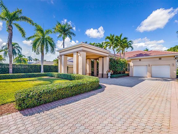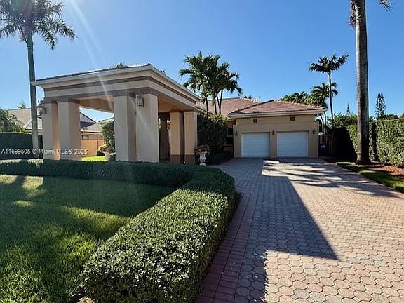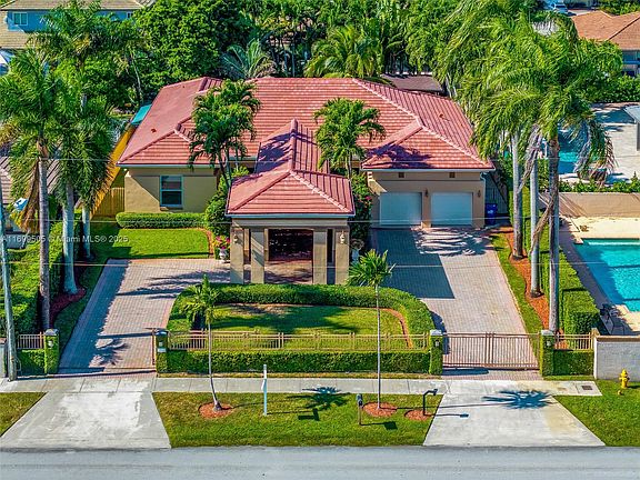 This beautiful home showcases true craftsmanship and quality materials. It offers 4 bedrooms and 3 baths, along with a formal living room, dining room, and a 2-car garage. Features include impact windows, a modern chef kitchen with granite countertops, a wine cellar, top-tier appliances, and a wet bar with a wine cooler. The home has 10-foot ceilings, a master bedroom with a Jacuzzi, marble floors, and wood floors in the bedrooms. The outdoor area is a tropical paradise with a fully equipped kitchen and pool surrounded by lush gardens. This is a must-see!