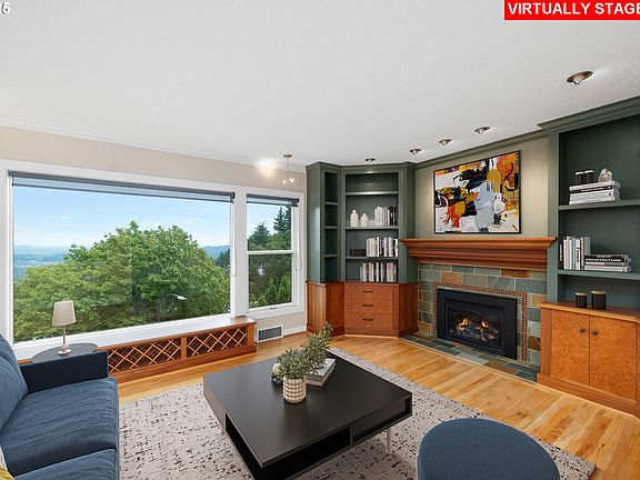 The open and light-filled main level features beautiful hardwood floors and is designed for both everyday living and effortless entertaining. A gracious living room with custom built-ins and a statement fireplace is framed by expansive windows that capture sweeping vistas of the surrounding landscape. The adjoining dining area offers a dramatic backdrop for memorable meals, while the gourmet kitchen impresses with high-end appliances, custom cabinetry, and a welcoming breakfast nook with planning desk.The primary suite on the main floor is a serene retreat, complete with spectacular outlooks and a spa-inspired bath. On the lower level, a spacious family room provides a comfortable, flexible space for everyday living and is complemented by three additional bedrooms and a full bath.A separate private guest quarters with its own kitchen and bath provides exceptional versatility for multigenerational living or long-term visitors.Outdoors, thoughtfully designed landscaping surrounds the property, offering privacy and tranquility while an expansive deck extends the living space, ideal for dining or soaking in the beauty of the natural setting. Just a few blocks away, Healy Heights Park offers a neighborhood playground and green space to enjoy.Offering the best of both worlds, this home enjoys the privacy of a hillside retreat with the convenience of being only minutes from downtown Portland, top-rated schools, parks, and vibrant local shops. A one-of-a-kind property where thoughtful design, unmatched privacy, and breathtaking scenery meet. [Home Energy Score = 2. HES Report at https://rpt.greenbuildingregistry.com/hes/OR10241827]