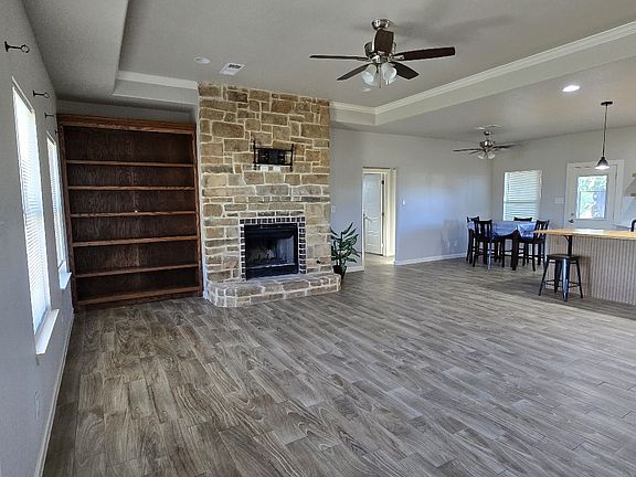 3 year old brick/rock executive home, 4-2-2 plus an office- FIBER OPTIC INTERNET AVAIL- Frontier FIOS 2GIG maybe more. LARGE secondary bedrooms 14.3 x 15.3 with walk in closets, TRIMMED closets with cabinets and shelves, 2 water heaters, High ceilings, custom made kitchen cabinets with all built ins and butcher block island, fireplace with gas starter, gas stove, sink in laundry room, custom cabinets, large insulated Super Bowl garage, large fenced yard with 3 trees, Private neighborhood, You can see neighbors horses and cattle from your windows. School bus stops in front of house. Close to highway 199 one year lease $2995/month. CALL 817-7 two one -8062