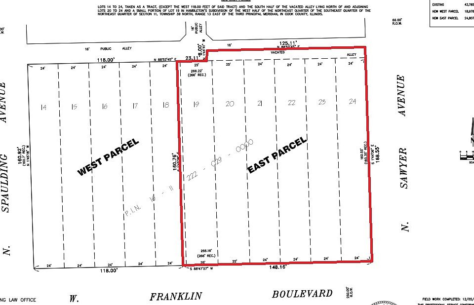 Excellent development opportunity in Humboldt Park! 24,807 SF of land ready for development at the corner of Franklin Blvd and Sawyer Ave. Located on the northwest corner of Franklin Blvd and Sawyer Ave.