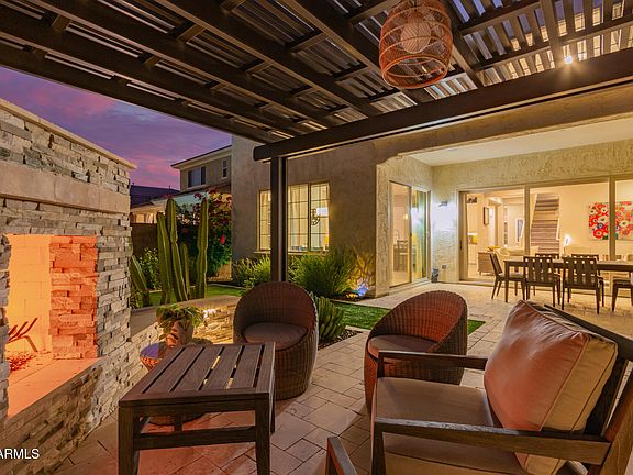 Welcome to this former model home built in 2018 and purchased new in 2021 by the original owner. Lightly lived in and exceptionally well maintained, this 4-bedroom, 3-bathroom, 3-car garage showcases thoughtful design and high-end finishes. Step into the formal dining room featuring soaring ceilings and designer chandelier, perfect for entertaining. The great room offers recessed lighting, plantation shutters & shades, sound system and durable tile flooring, with large sliding doors that open to the backyard with a built-in grill & gas fireplace. The kitchen is complete with granite countertops, white shaker cabinets, crown molding, stainless steel appliances, water softener, walk-in pantry, and island with breakfast bar seating. Also comes with a full security alarm system. Upstairs, you'll find a cozy loft that provides a versatile space to fit your needs. The luxurious primary suite boasts soft carpeting, a lavish ensuite with double vanities, a soaking tub, and a large walk-in closet. Imagine tranquil moments in the enchanting backyard, which offers a covered patio, travertine pavers, an exterior fireplace for evenings under the stars, pristine artificial turf, and a lovely gazebo with a built-in BBQ for weekend grills. Don't miss out on this gem!