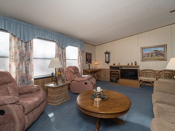 Open floor plan, beautiful 1560sf double wide manufactured home in the 55+ Picture Ranch Home Park. Located on a corner spacious lot. This 3 bedroom, 2 full bath home has a 2- space carport, new roof, new evaporative cooler, newer appliances and includes the washer and dryer in the sale. Rooms are large with a split floorplan. This unit has an outside sitting area that is very private in addition to a nice sized shed. Park amenities include trash, water, irrigation water, RV parking area, and club house. Monthly lot rent is $409. The park is now under new management!