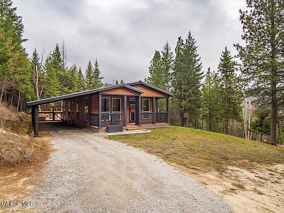 One-of-a-kind private luxury mountain estate set on 55 acres and bordering 80 acres of Kaniksu National Forest. This immaculate 4,250 sq ft Greenstone custom home (built to Spokane building standards) offers open-concept living with 3 bedrooms, 3.5 baths, an office, theater, formal dining room, and family room. Floor-to-ceiling picture windows frame breathtaking 22-mile panoramic vistas, including Schweitzer Mountain Resort. Natural light floods the vaulted great room, enhanced by exposed beams, custom finishes, and a stunning chandelier. An 800 sq ft covered balcony extends the living space, perfect for entertaining or enjoying wildlife-filled sunsets.