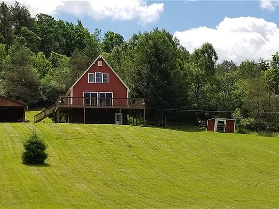 Just minutes away from the village and offers seclusion on this 3-acre lot high on the hill. Well maintained three-bedroom 2 bath home with detached carport and garage space beneath the house, garden shed, chicken coup, fruit and vegetable gardens. Large eat in kitchen sunlit living room, family room and large wrap around deck for outdoor entertaining. Great house; make it your home.