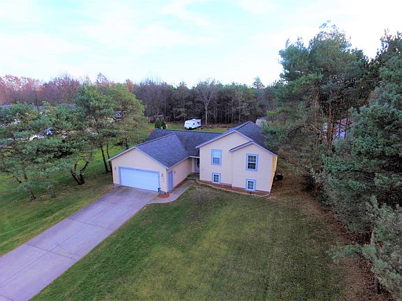 Owner is a licensed Realtor. Well maintained 4 bedroom, 2-1/2 bath home located on a beautiful ~1 acre lot in Fruitport Township. Enter the main level through the front door or the attached 2-car garage. Main level boasts an open floor plan with kitchen, dining and living areas surrounded by large windows and a vaulted ceiling. Listen to your favorite music through the 4 in-ceiling speakers. Enjoy the breakfast bar island in the kitchen. Open the sliding door to venture outside onto the deck. The front entry is tiled and has a nice sized closet for storing coats and shoes. You will also find a 1/2 bath just off the main floor living area. The upper level is where you will find the Master Bedroom with large walk-in closet as well as in-ceiling speakers, a full bathroom with linen closet, 2 additional large bedrooms, and a storage closet at the end of the hallway. The lower level is completely finished and has a spacious family room that is wired for surround sound and has connections in the ceiling for a projector. There is also an area for a future wet bar that is pre-plumbed and ready to go! The laundry area is found in the lower level and is concealed by two bi-fold doors. The large 4th bedroom with a generous closet is located in the lower level as well as another full bathroom. The utility closet holds the water heater and furnace and is accessed from inside the lower level bathroom. There is a huge crawlspace located under the main level. It is wired with lights and has a cement floor - perfect for storing season decoration, keepsakes, and any other items that you need from time to time. The irrigation blowout connection and shut-off is located in the crawlspace as well. The front and back yards have underground sprinkling and a large barn is located towards the rear of the back yard. More photos to come. All appliances are negotiable. Possession: minimum 15 days after closing. Owner is a licensed Realtor.